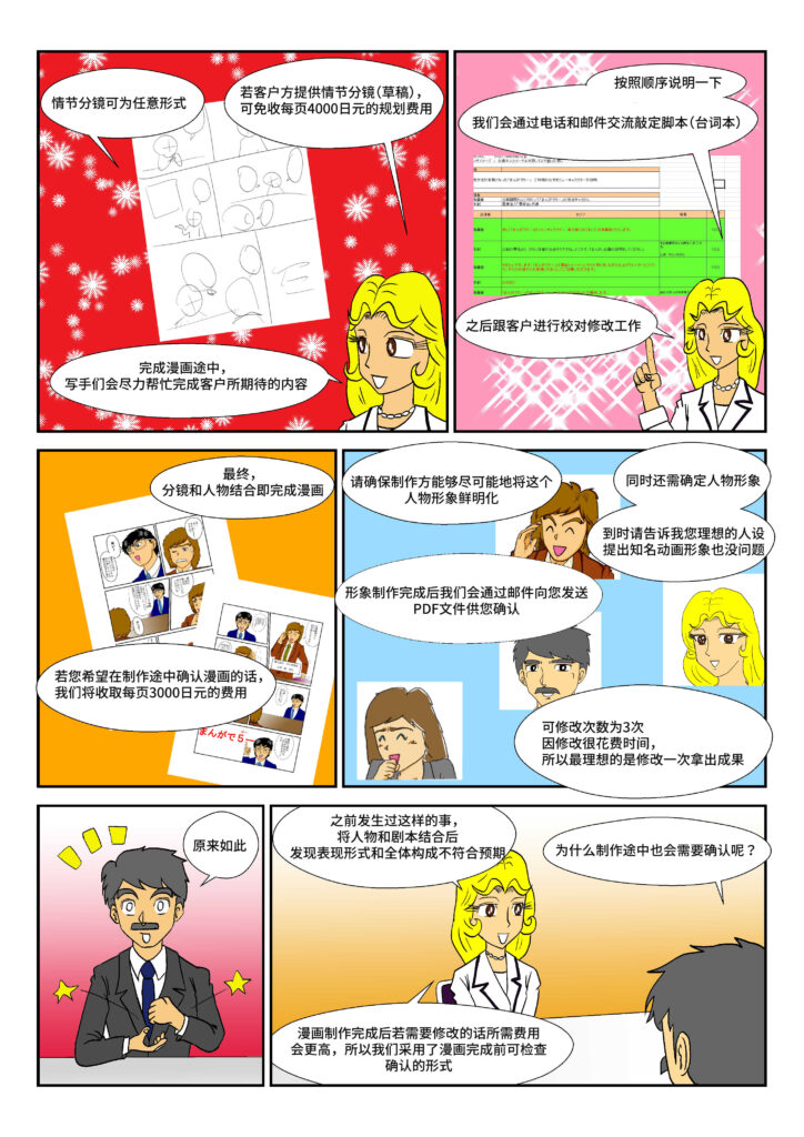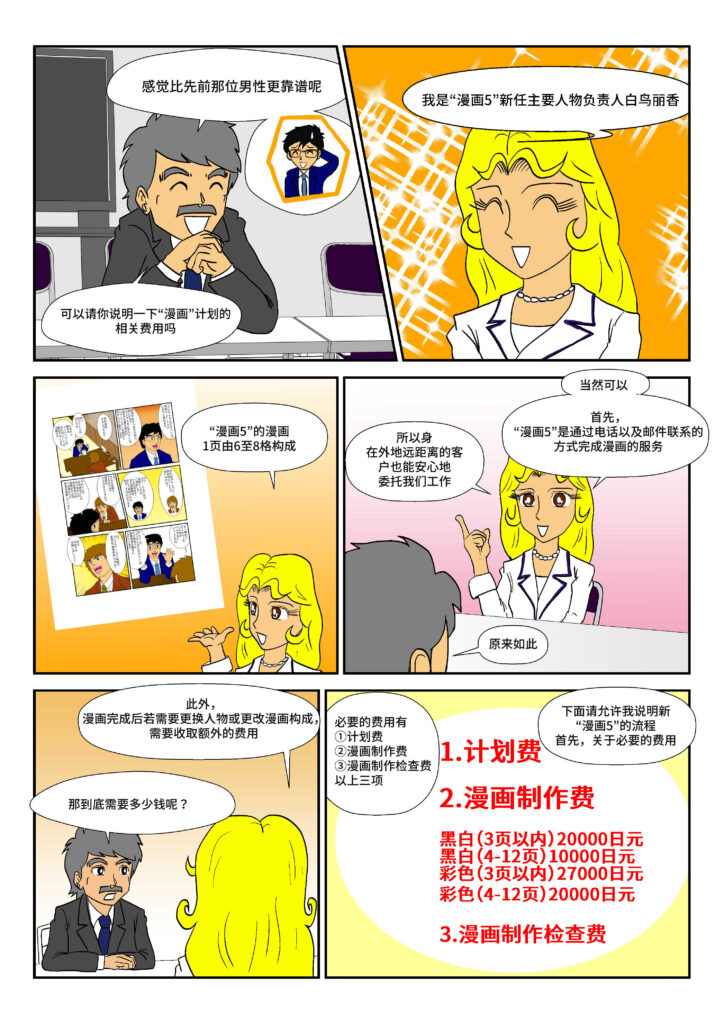 1) 制作日本漫画 从 10 年的商业漫画经验和 RJP 一直支持许多外国公司,我们能够将您的故事以多种语言翻译成漫画。